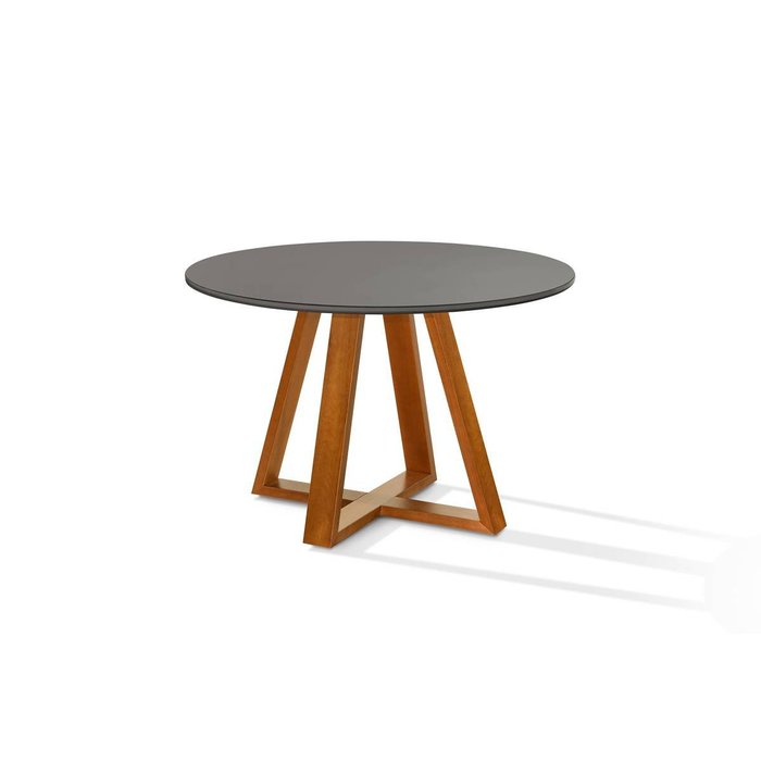Mesa de Jantar Bela Redonda Base de Madeira Tampo MDF/Vidro