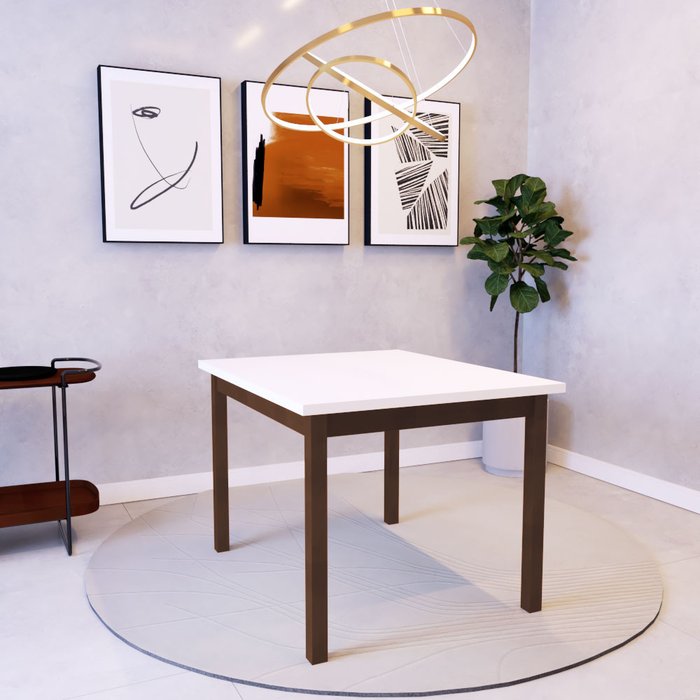 Mesa de Jantar Berlim Tampo Branco Base de Madeira Maciça Imbuia