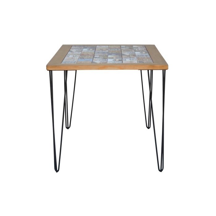 de pinus maciça com azulejo aplicado e seus pés em aço carbono com pintura