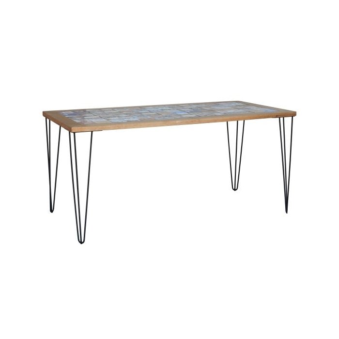 de pinus maciça com azulejo aplicado e seus pés em aço carbono com pintura