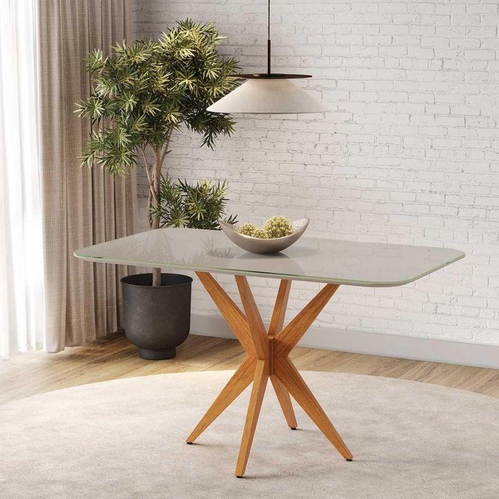 Mesa De Jantar C/ Base Estrela E Tampo C/ Vidro 1.20 X 0.80 Cor: Cinamomo / Off - Mesa Simpatia - Jcm