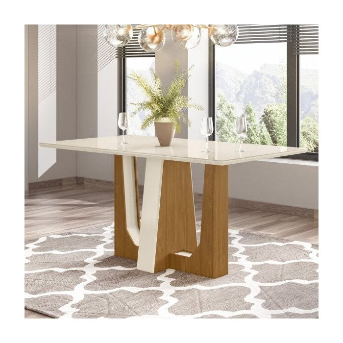 Mesa de Jantar com Tampo de Vidro 160cm Alfa Móveis Henn Nature/Off White