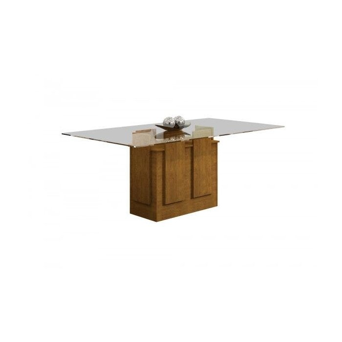 Mesa de Jantar com Tampo de Vidro 8mm 1,60M Amsterdã Rufato Imbuia/Imbuia