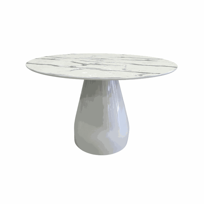 Mesa de Jantar Cone Balonê Redonda 130 cm Tampo Marmorizado Carrara Base Branca