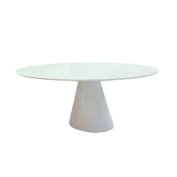 Mesa de Jantar Cone Oval 140x90 Cm Tampo Laca + Vidro Branca Base Branca