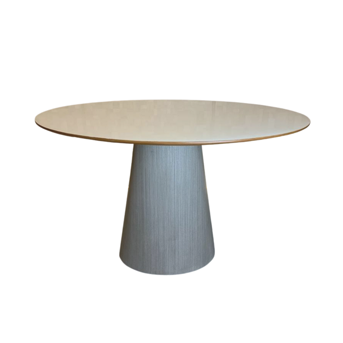 Mesa de Jantar Cone Oval 140x90cm Tampo Laca + Vidro Base Madeira Grigio - Branco Grigio