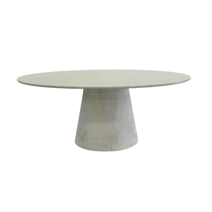Mesa de Jantar Cone Oval 198x122 Cm Tampo Off White + Vidro Base Concreto