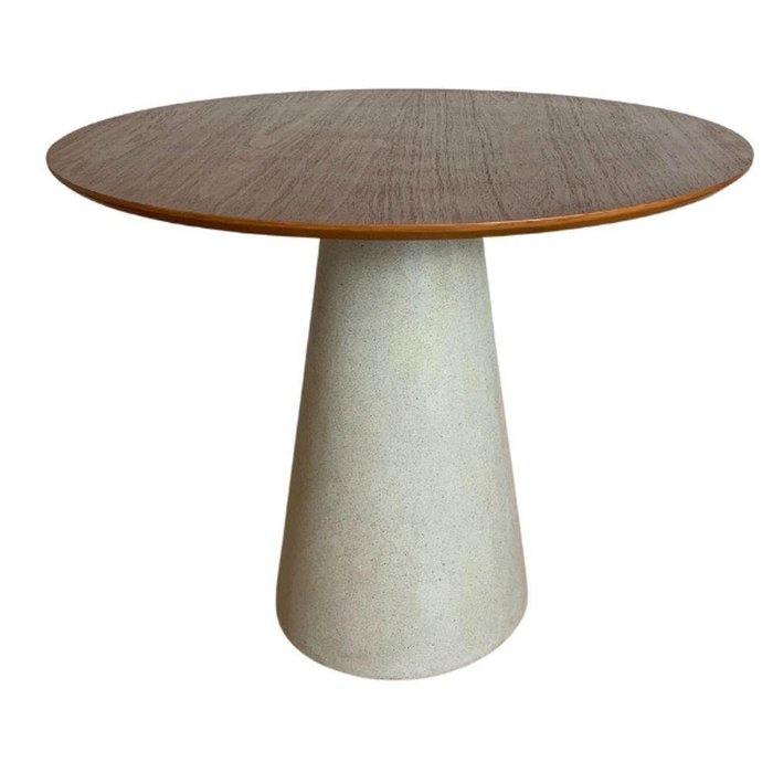 Mesa de Jantar Cone Redonda 100 Cm Tampo Imbuia Base Concreto Cor Cinza