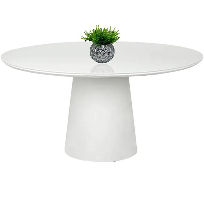 Mesa de Jantar Cone Redonda Branca com Vidro Coverglass Sobreposto Tatu Bola Móveis Cone Fibra 1,40m