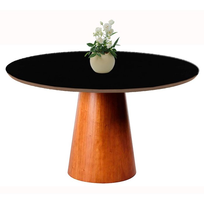 Mesa de Jantar Cone Redonda Madeira Curupixá com Tampo Madeira - Madeira Preta - 0,80M