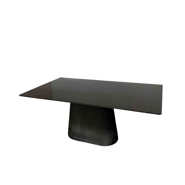 Mesa De Jantar Cone Retângular 235x122 cm Tampo Laca Preta Base Corda Náutica Preta Personal Decor M