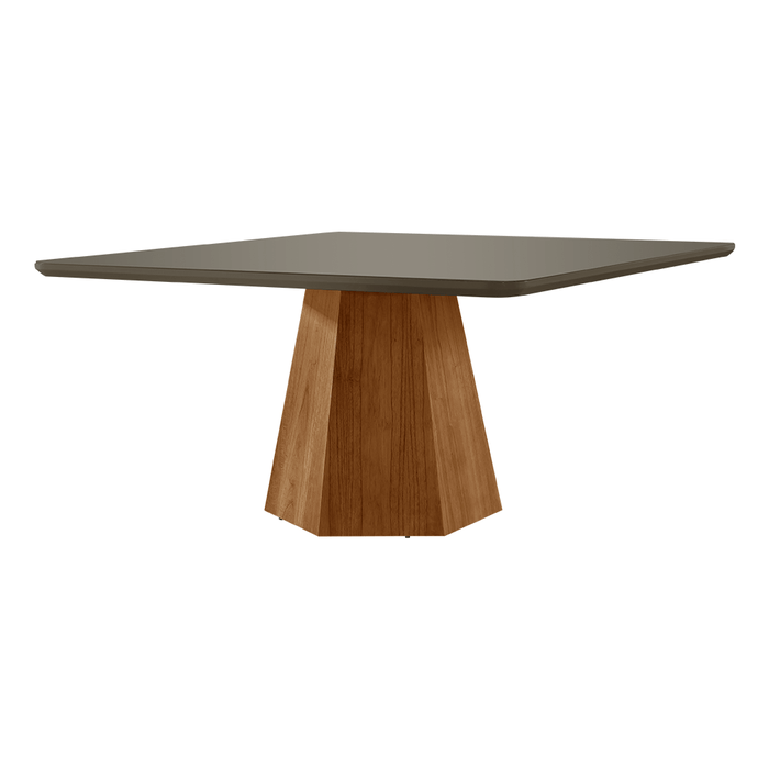 A mesa de jantar Conor é uma peça sofisticada e elegante, perfeita para receber amigos e familiares em ocasiões especiais. Seu tampo quadrado amplo proporciona bastante espaço para acomodar pratos, travessas e utensílios de mesa, enquanto o acabamento em laca de alta qualidade com vidro colado confere um aspecto brilhante e duradouro à superfície da mesa. A estrutura da mesa é feita em madeira nobre laminada de jequitibá rosa, conferindo robustez e durabilidade à peça. A tonalidade da madeira é rica e atraente, conferindo um aspecto natural e elegante à estrutura da mesa. A combinação do tampo em laca com a estrutura em madeira cria um contraste sofisticado e moderno, tornando a mesa de jantar Conor uma escolha perfeita para qualquer ambiente que busca um estilo elegante e atual.