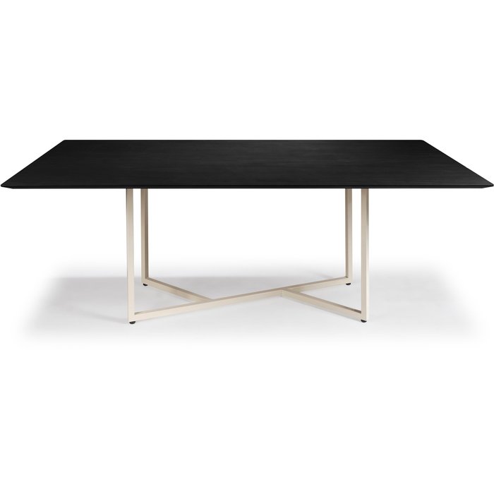 Mesa de Jantar Diadema Aço Carbono Dourado Tampo Laca Preto + Vidro