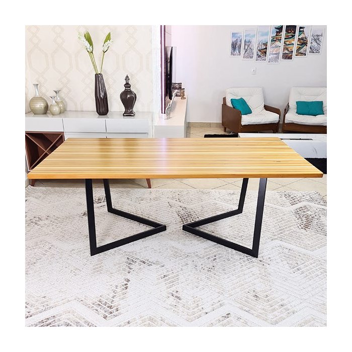 Mesa de Jantar em Madeira Nobre Ripada Base de Ferro V Sala de Jantar Gourmet - 2,60 X100cm