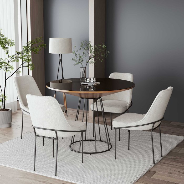 Mesa de Jantar Emma Cone Chanfrada Redonda Nozes Base Preta 1.20 Cm Vidro Preto