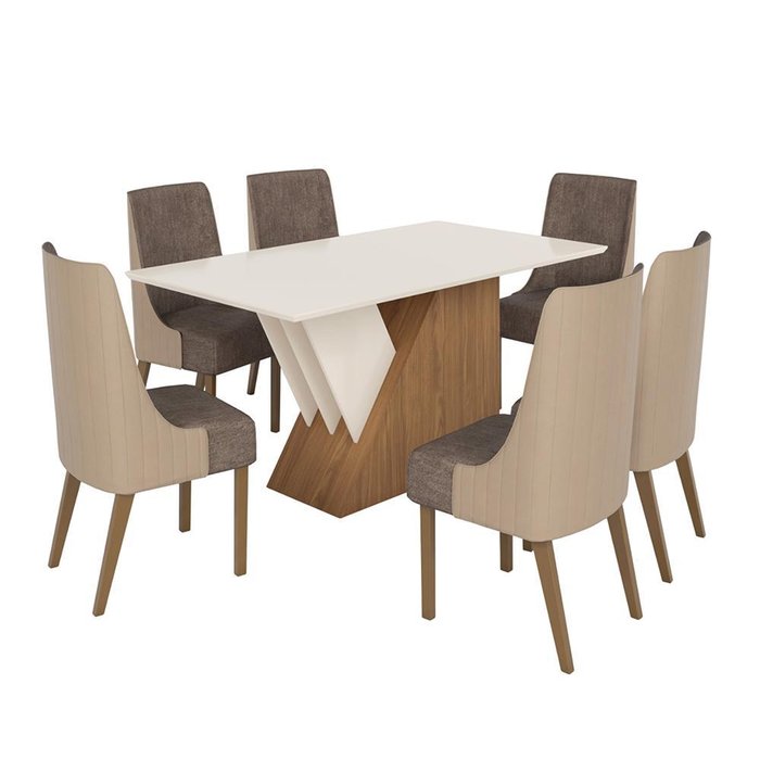 Mesa de Jantar Epic Tampo de Mdf com 6 Cadeiras Ivy Off White/nature/corano Bege/suede Cacao - Mó