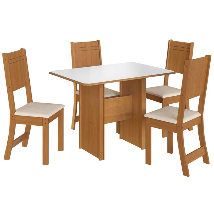 Mesa de Jantar Evora com 4 Cadeiras Indekes Cor Freijó Off White Freijó Off White