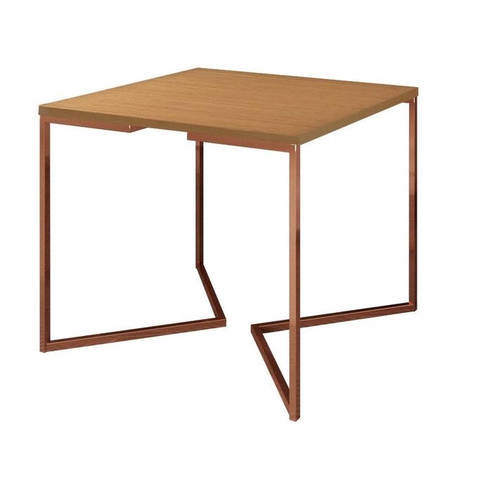 Mesa de Jantar Industrial Base De Ferro Cobre em V Tampo 90x90 Canela