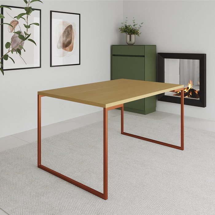 Mesa de Jantar Industrial Canela Manchester com Base Cobre COBRE