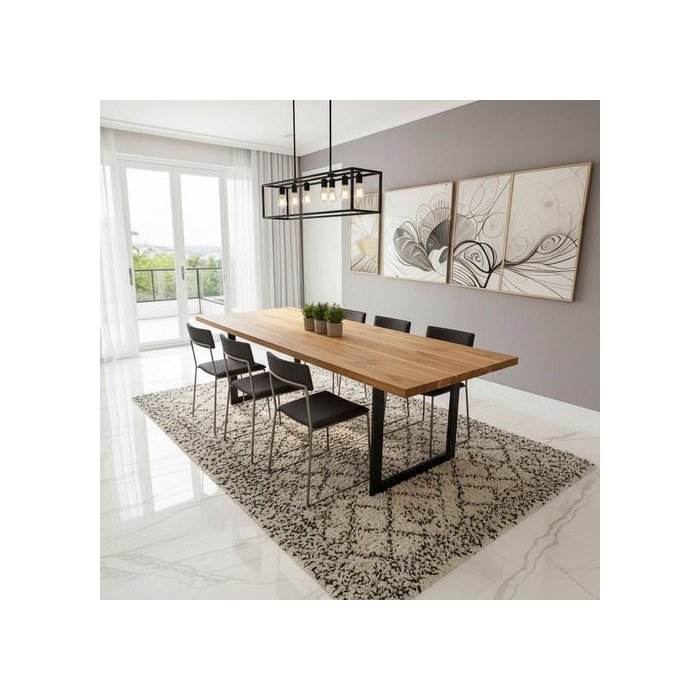 A Mesa de Jantar Estilo Industrial Madeira Maciça Teca com Pé Metal Preto é a escolha perfeita para quem busca um móvel robusto e cheio de estilo para a sala de jantar ou cozinha. Com capacidade para até 8 pessoas, é ideal para receber amigos e familiares em ocasiões especiais. Seu design industrial traz um toque moderno e sofisticado ao ambiente, enquanto a base em Metalon com pintura eletrostática garante durabilidade e resistência. A tampa em madeira teca confere um acabamento fosco e elegante, tornando-a uma peça única e versátil. Além disso, seu comprimento de 200 cm proporciona espaço de sobra para refeições confortáveis e agradáveis. A montagem é simples e rápida, permitindo que você desfrute de sua nova mesa em pouco tempo. Adquira já a Mesa de Jantar Industrial Madeira com Pé Metal Preto e transforme sua casa em um ambiente acolhedor e cheio de personalidade. Design Impecável, uma fusão perfeita de estilo clássico e contemporâneo, tornando-a uma peça que se destaca em qualquer ambiente. Feita para resistir ao teste do tempo, esta mesa é um investimento duradouro que mantém sua beleza e integridade ao longo dos anos. A madeira Teca está entre as matérias-primas preferidas dos brasileiros por alguns motivos consideráveis. Entre eles, beleza, durabilidade e resistência. Teca uma madeira com ótima durabilidade natural porque apresenta oleosidade típica da sua própria existência e também a presença de sílica, que contribui para que dure por muitos anos. Sem dúvida, entre todas as características da madeira Teca, a responsável pela sua popularidade é a resistência à umidade. Essa qualidade é tão importante que ela é utilizada, além da fabricação de móveis, pela indústria naval e para a fabricação de revestimentos e assoalhos. O acabamento em fundo seladora e cera carnaúba garante um toque de sofisticação, enquanto o estilo industrial adiciona um ar moderno ao espaço. Com medidas de 200x100x78cm, esta mesa retangular é perfeita para ambientes internos e externos (cobertos), como área gourmet, churrasco, jardim e varanda. Requer montagem, mas o resultado final certamente valerá a pena. Seja para refeições do dia a dia ou para eventos especiais, a Mesa de Jantar Industrial Tampo Madeira Maciça da MADEIRA DECOR SHOP é a escolha certa para quem busca qualidade, resistência e design único. Adquira já a sua e transforme seu espaço em um ambiente acolhedor e cheio de personalidade.
