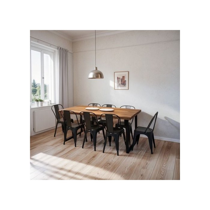 Mesa de Jantar no estilo industrial, tamanho 180x90cm. , com pés confeccionados em Metalon 50x30 com pintura eletrostática e tampo 100% Madeira Maciça Teca, garante alta resistência e durabilidade ao produto . Uma das maiores tendências do design de interiores na última década, sua história é muito antiga, ainda do século passado . Elegância e sofisticação . Sim, estamos falando da decoração industrial. Hoje esse estilo está nas graças de pessoas dos quatro cantos do mundo.