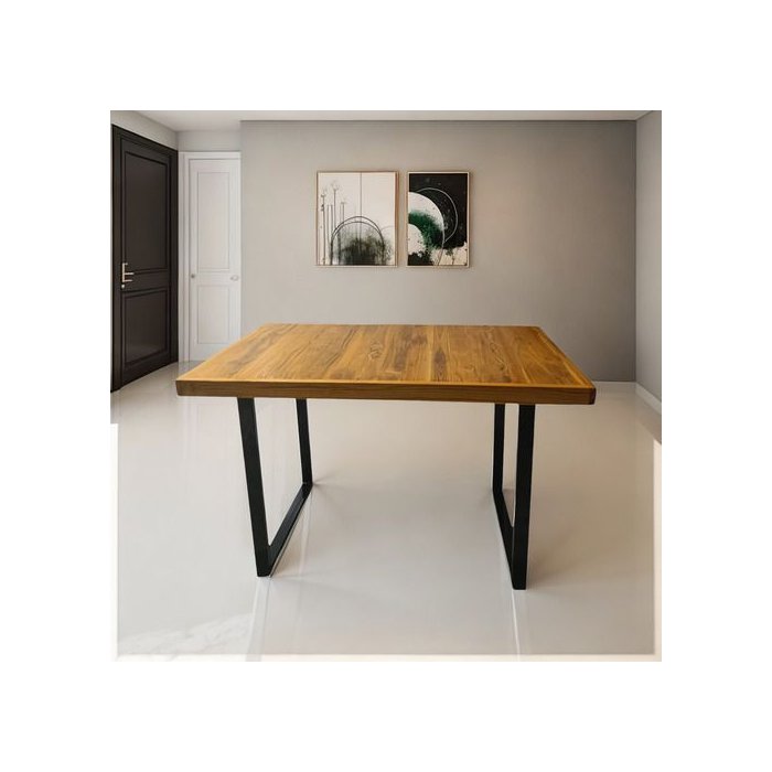 Mesa de Jantar no estilo industrial, tamanho 100x80x78cm. , com pés confeccionados em Metalon 50x30 com pintura eletrostática e tampo 100% Madeira Maciça Teca, garante alta resistência e durabilidade ao produto . Uma das maiores tendências do design de interiores na última década, sua história é muito antiga, ainda do século passado . Elegância e sofisticação . Sim, estamos falando da decoração industrial. Hoje esse estilo está nas graças de pessoas dos quatro cantos do mundo.