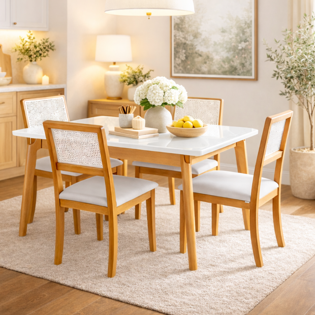 Dimensões ideais para 4 lugaresPerfeita para apartamentos, cozinhas e salas de jantar compactas, acomodando confortavelmente até quatro pessoas sem comprometer a circulação.