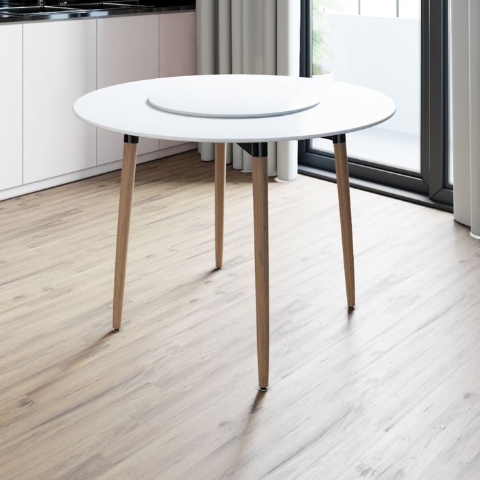 Prato de 60 cm em MDF acoplado ao tampo da mesa.