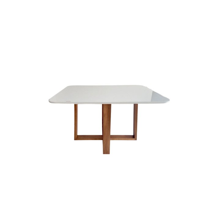 Mesa de Jantar Lille 120cm X 90cm Base em Madeira Tampo com Vidro Off White