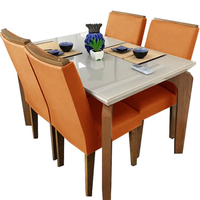 Mesa de Jantar Londrina com 4 Cadeiras Imbuia Rufato Móveis Cor Tampo Off White Tecido Cobre