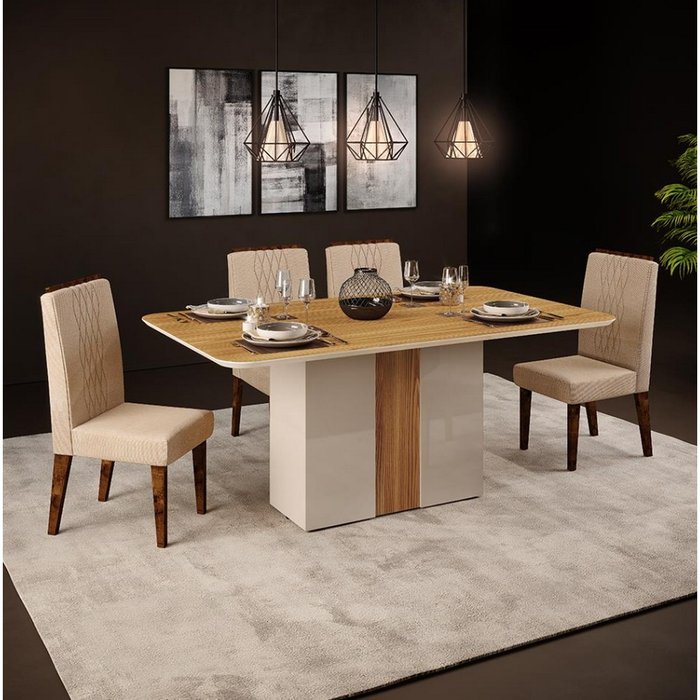 Observações: Item composto APENAS pela Mesa de Jantar DJ Móveis Londrina 79,5 x 170 cm e 4 Cadeiras. Demais peças e acessórios são meramente ilustrativos e NÃO fazem parte do conteúdo da embalagem.
