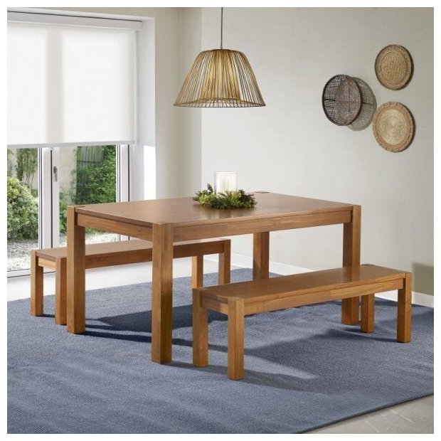 Linda, não é mesmo? A Mesa de Jantar Madeira Maciça Primavera MadeiraMadeira traz um toque de elegância e sofisticação na sua sala de jantar, deixando o ambiente com o seu jeitinho. Ela é toda de madeira maciça (pinus), super fácil de montar, e é recomendada para 4 lugares. As medidas principais são: Mesa (A x L x P) 77 x 160 x 90 cm, e o tampo possui espessura de 30 mm, Banco (A x L x P) 43 cm x 138 cm x 35 cm, suportando até 250kg bem distribuídos e com acabamento em verniz. Use sua criatividade no seu ambiente e conte pra gente como ficou nos comentários.