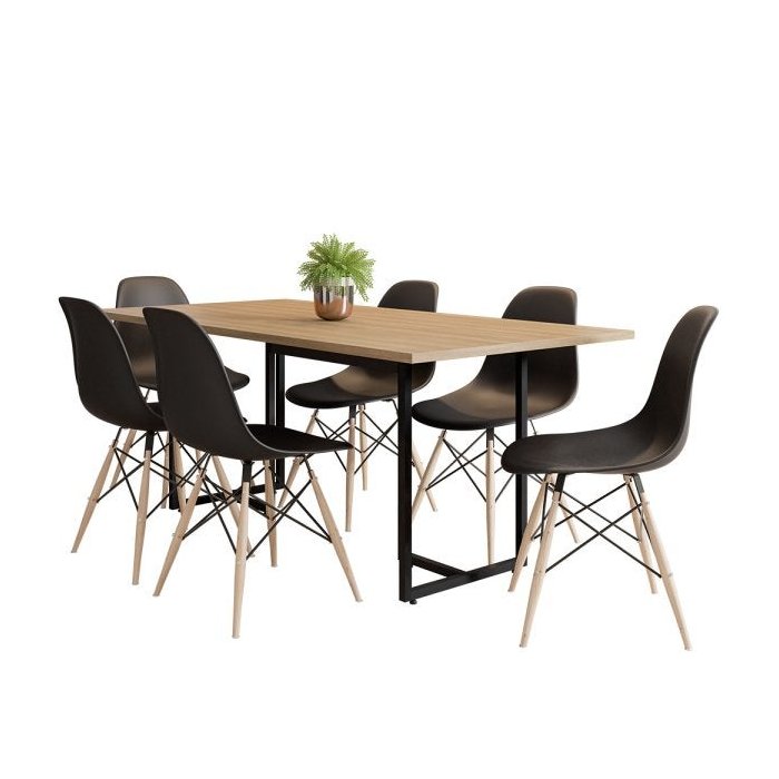 Mesa de Jantar Maldiva Industrial Nature F01 com 6 Cadeiras Eiffel Charles Eames Preto - Lyam