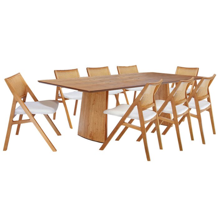 Mesa de Jantar Malta com 8 Cadeiras Ares Cinamomo Claro - 240x120cm.