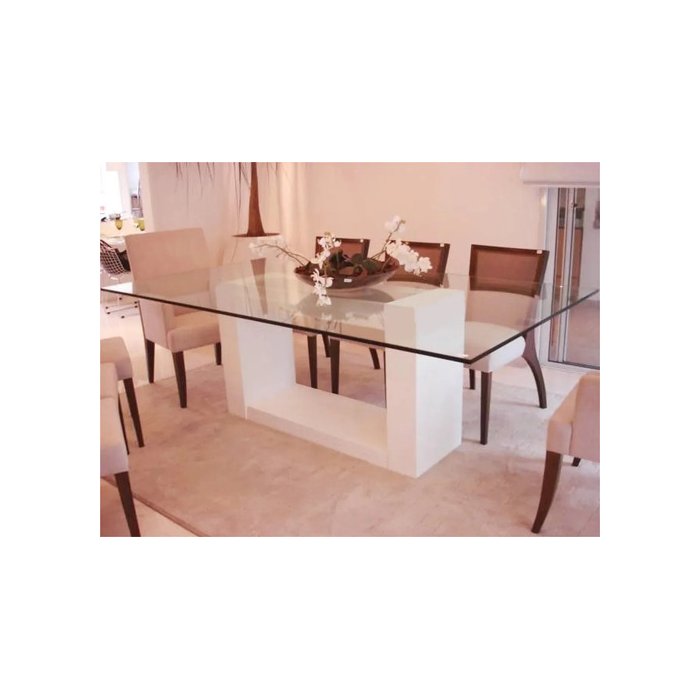 Mesa De Jantar Mdf Laca Branco Brilho Com Vidro Transparente