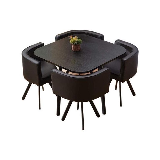 Mesa de Jantar Minimalista com 4 Cadeiras Compacta 1m2:base da Cadeiras Negras com Tecido Anti-rasgo preto quadrado