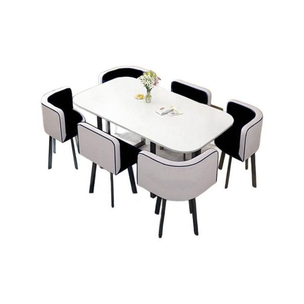 Mesa de Jantar Minimalista com 6 Cadeiras Compacta 145cm:bicolor/branco e Preto branco e preto
