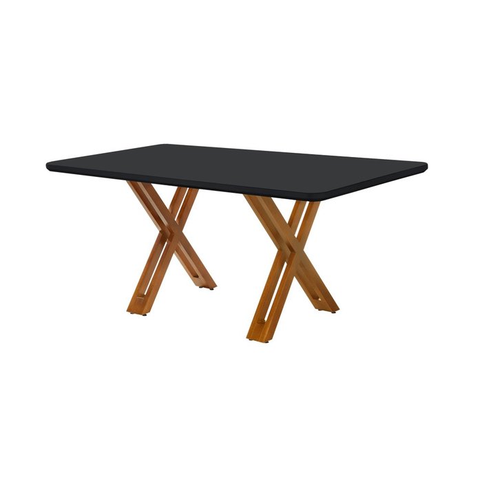 Mesa de Jantar Nadia 120x80 Linha Blend e Tampo Preto Base em Madeira Maciça