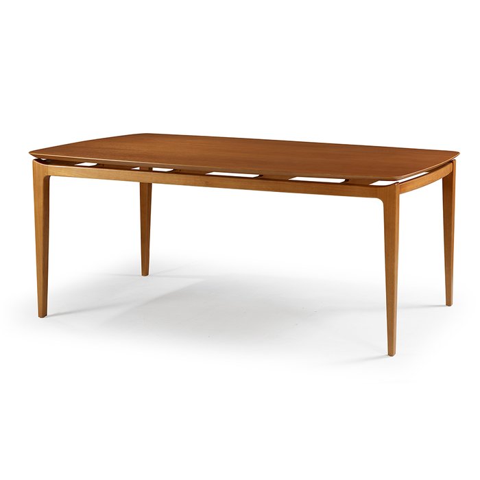 A mesa de jantar Norin busca retratar, no seu desenho, a leveza e harmonia, atribuída pela soltura entre o tampo oval e sua estruturação dos pés, como também em todas as suas formas arredondadas. Feita em madeira de Tauari, com possibilidade do uso de vidro nas cor Off White sobre o tampo.
