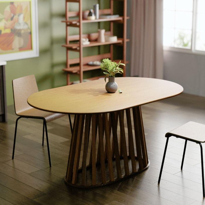 Mesa de Jantar Oval Madeira Maciça 6 Pessoas Amêndoa
