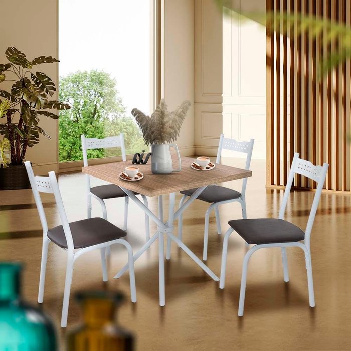 Mesa de Jantar Pequena com 4 Cadeiras Branco Carvalho Adel Slim Shop Jm