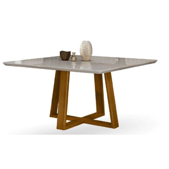 Mesa de jantar quadrada com tampo de vidro 1,50x1,50m - Valença - Star Móveis