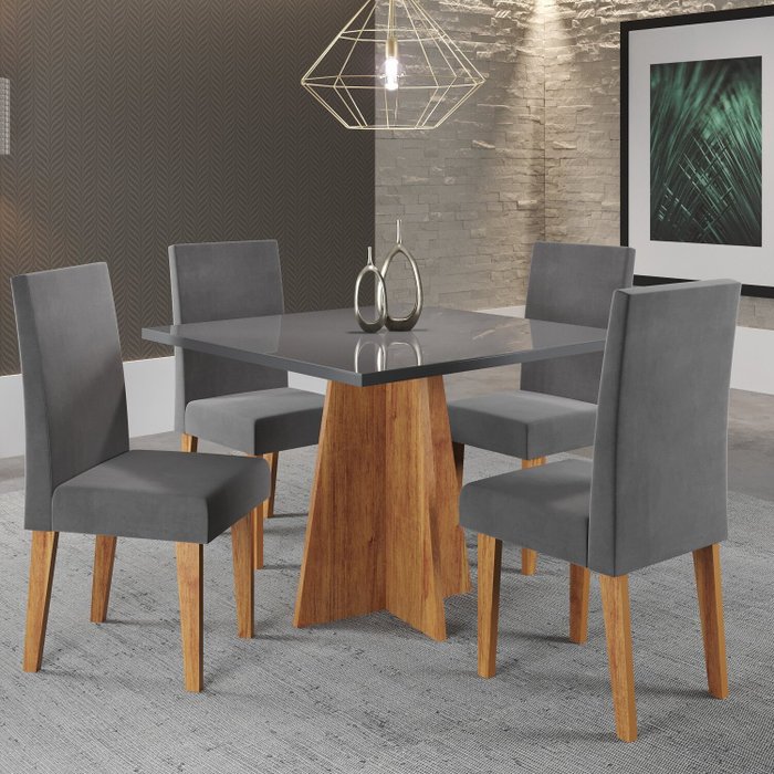Mesa de Jantar Quadrada Decora com Vidro 90x90 com 4 Cadeiras Venus em Mdp/mdf Cinza