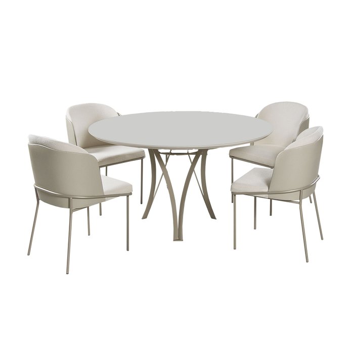 Mesa de Jantar Redonda 1,20m Vidro Off White com 4 Cadeiras Aurora Off White