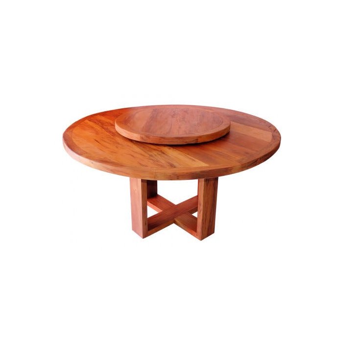 Mesa de Jantar Redonda 1,60m com Giratório em Madeira de Demolição Peroba Rosa