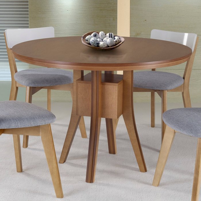 Mesa de Jantar Redonda 120 Cm de Madeira para Cozinha Cor Imbuia Imbuia