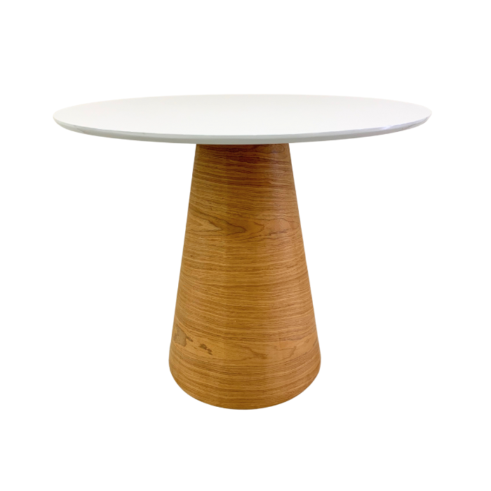 Mesa de Jantar Redonda 90 Cm Tampo Laca Branca Base Freijó Horizontal