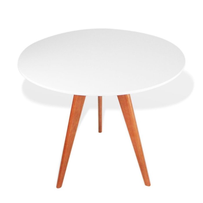 Mesa de Jantar Redonda Base Tripé em Madeira Maciça - 80 Cm Branco