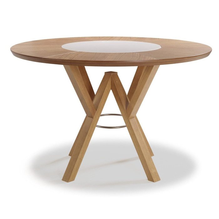 Mesa de Jantar Redonda Camélia com Vidro Giratório no Tampo Amendoa