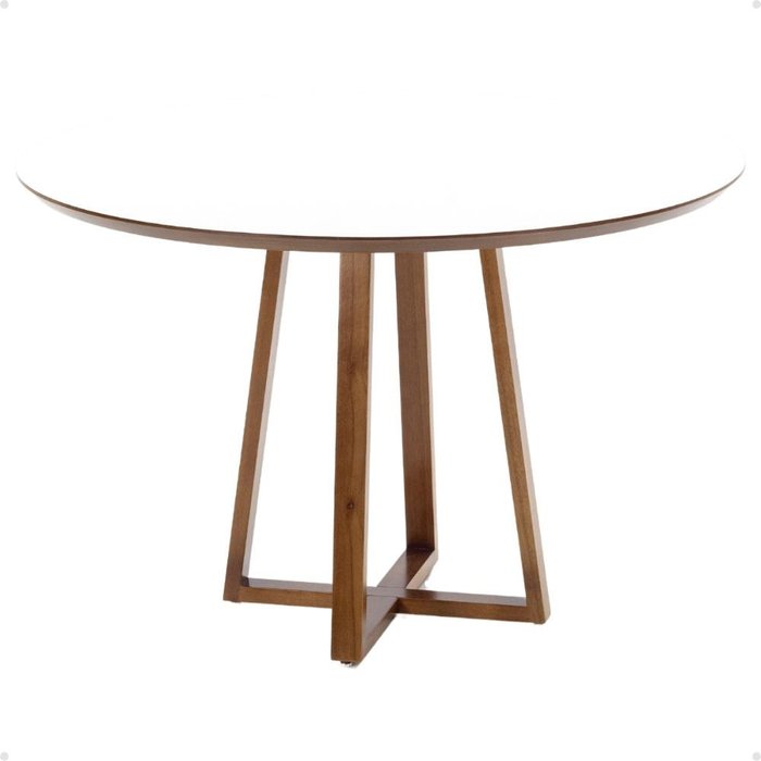 Mesa de Jantar Redonda Lara Premium 120cm em Madeira Maciça e MDF - Branco